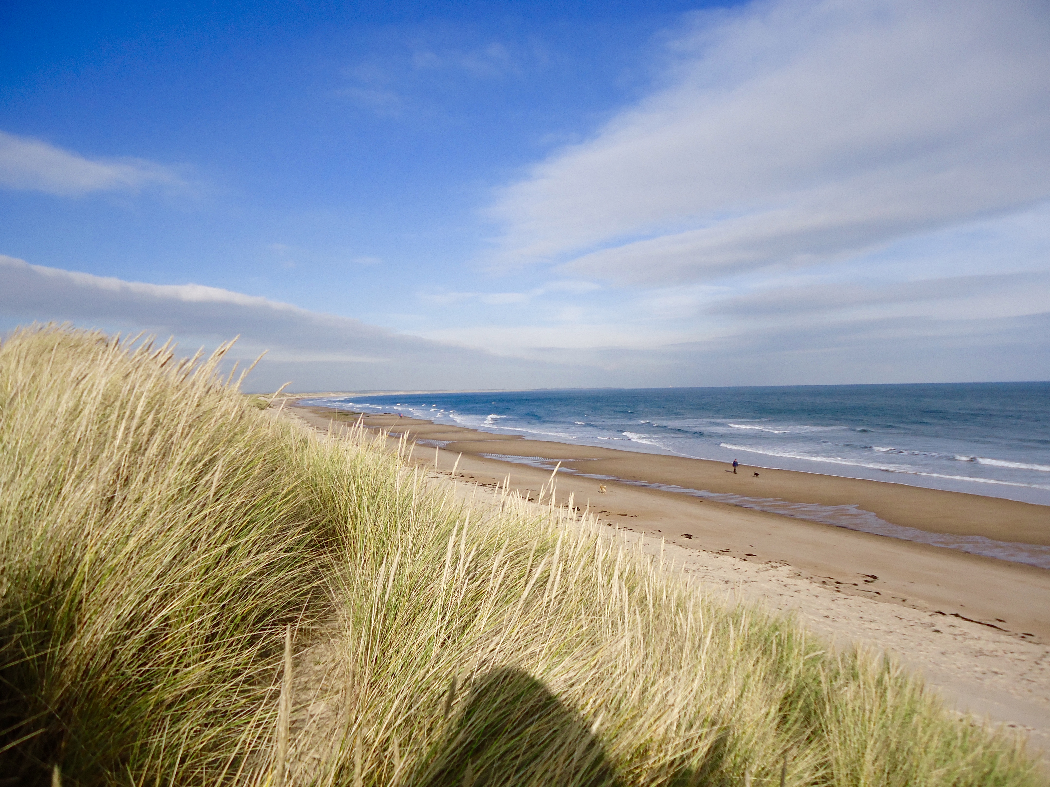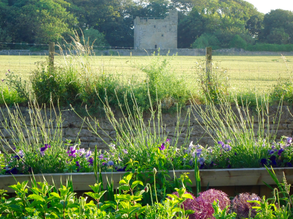 PELE VIEW COTTAGE is right next door ! This cottage is ideal for a family holiday, sleeping up to four people (including children) in two bedrooms, and in this cottage we accept up to two well-behaved small or medium sized dogs too. The master bedroom has a king-sized bed while the second bedroom has two single beds. Pele View (as its name suggests) boasts a stunning view of the medieval Pele Tower directly opposite as well as a great sea view from the rear, and provides an extremely comfortable and stylish holiday home. The ground floor is huge and open-plan, with slate-tiled floor, exposed stone walls, wooden beams and modern furniture. There is a large wood-burning stove in the living area for that cosy evening fire, and the kitchen/dining area is stylish, traditional in feel and uncluttered with plenty of space for everyone around the large dining table. There is a small garden at the rear of the cottage and a private wooden bench on the ‘Bank Top’ (the water’s edge) from which to enjoy the sea view. The seven miles of sand at Druridge Bay are only a few steps away from the cottage.