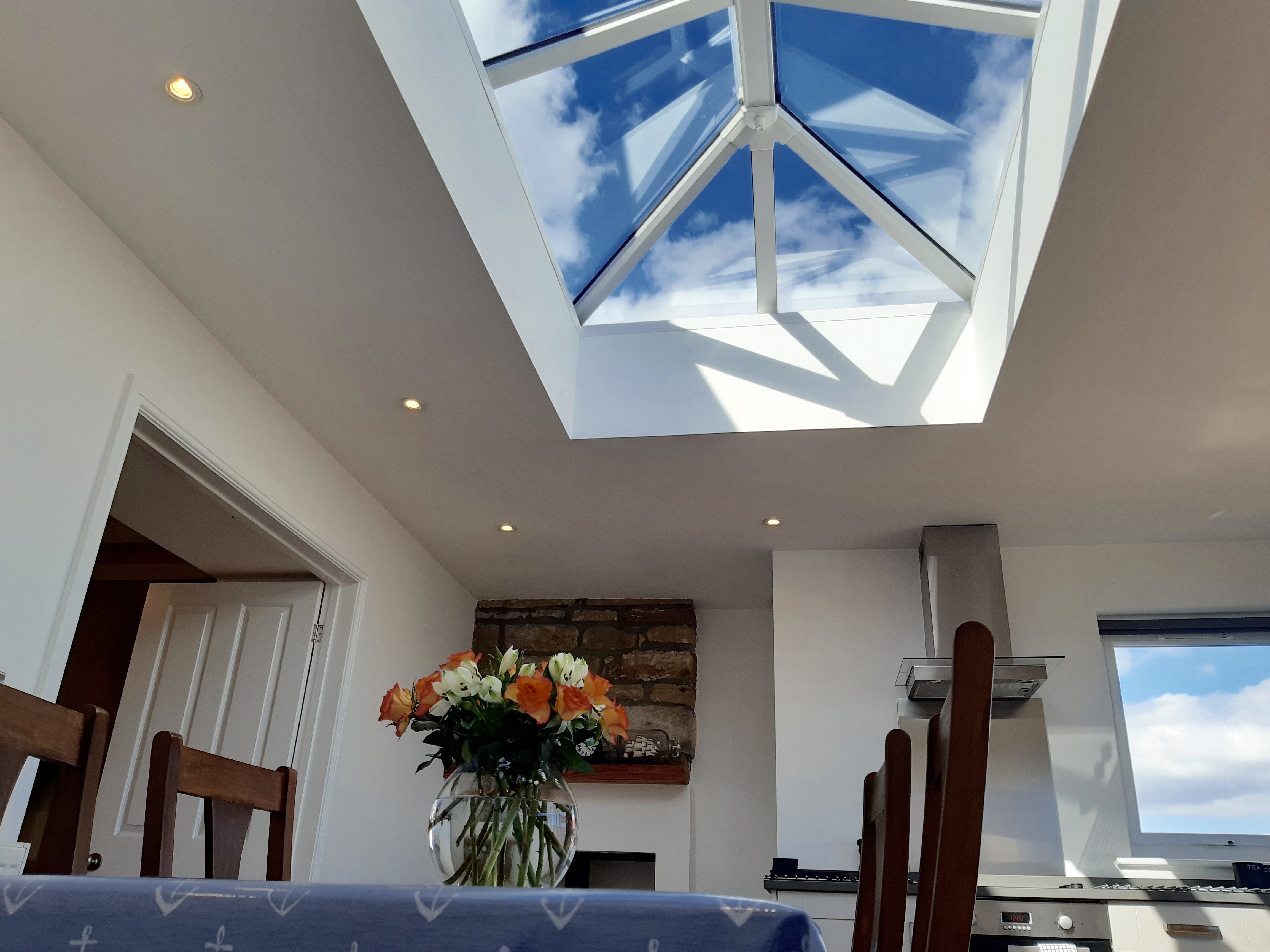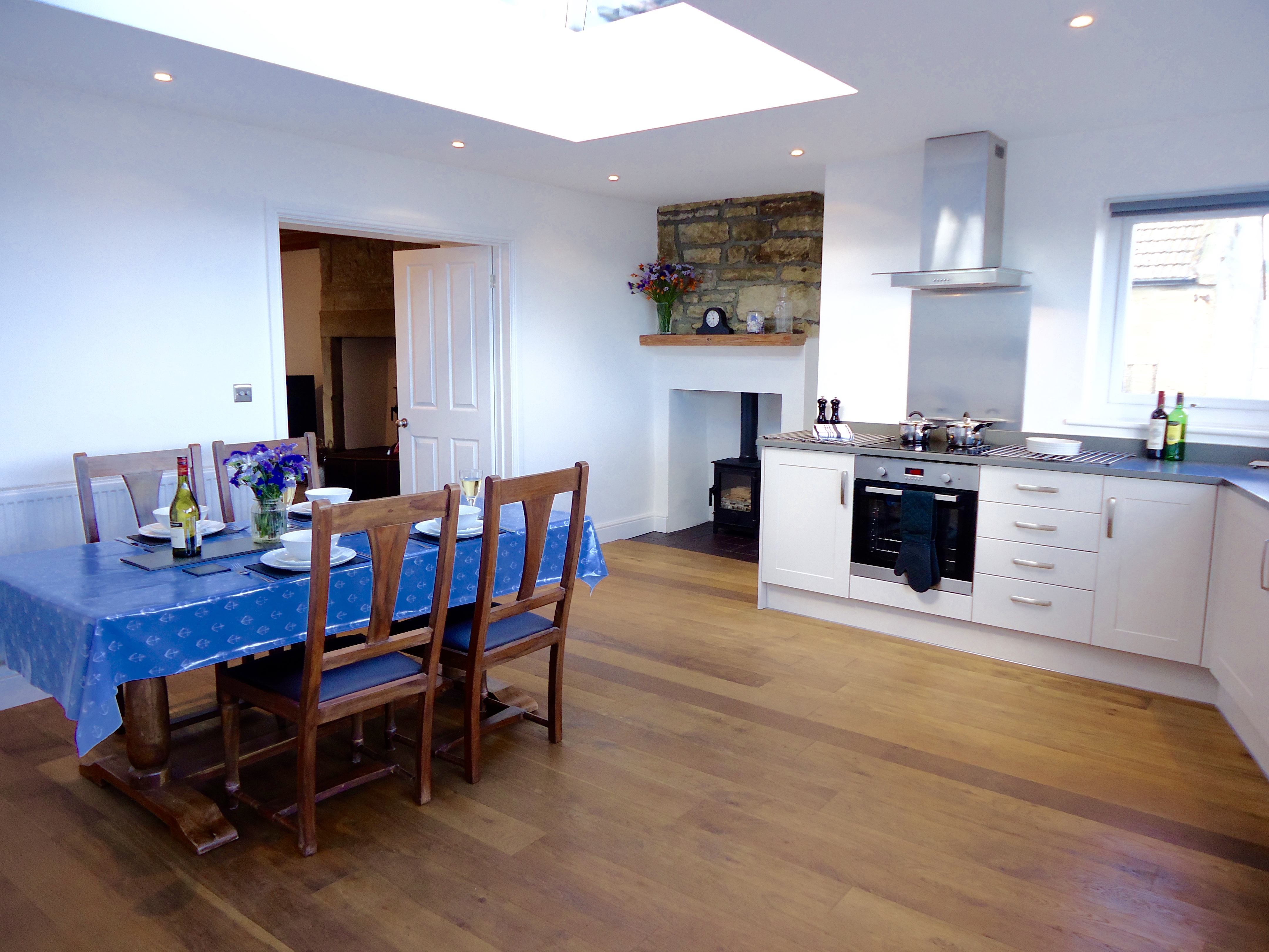 The kitchen is fully equipped with fridge, freezer, dishwasher, washing machine and tumble dryer. It even has its own log burner. Double doors lead through to the living room