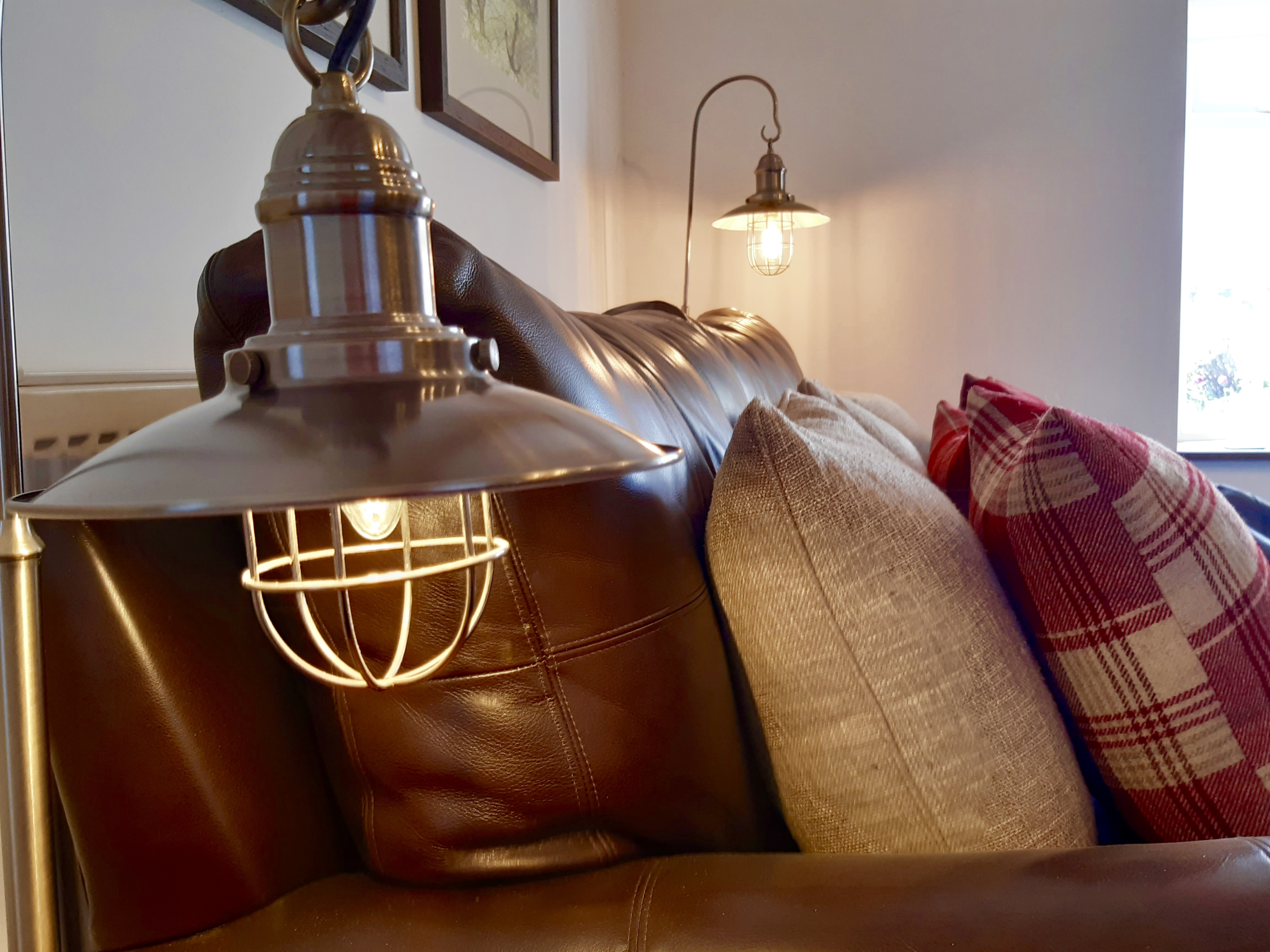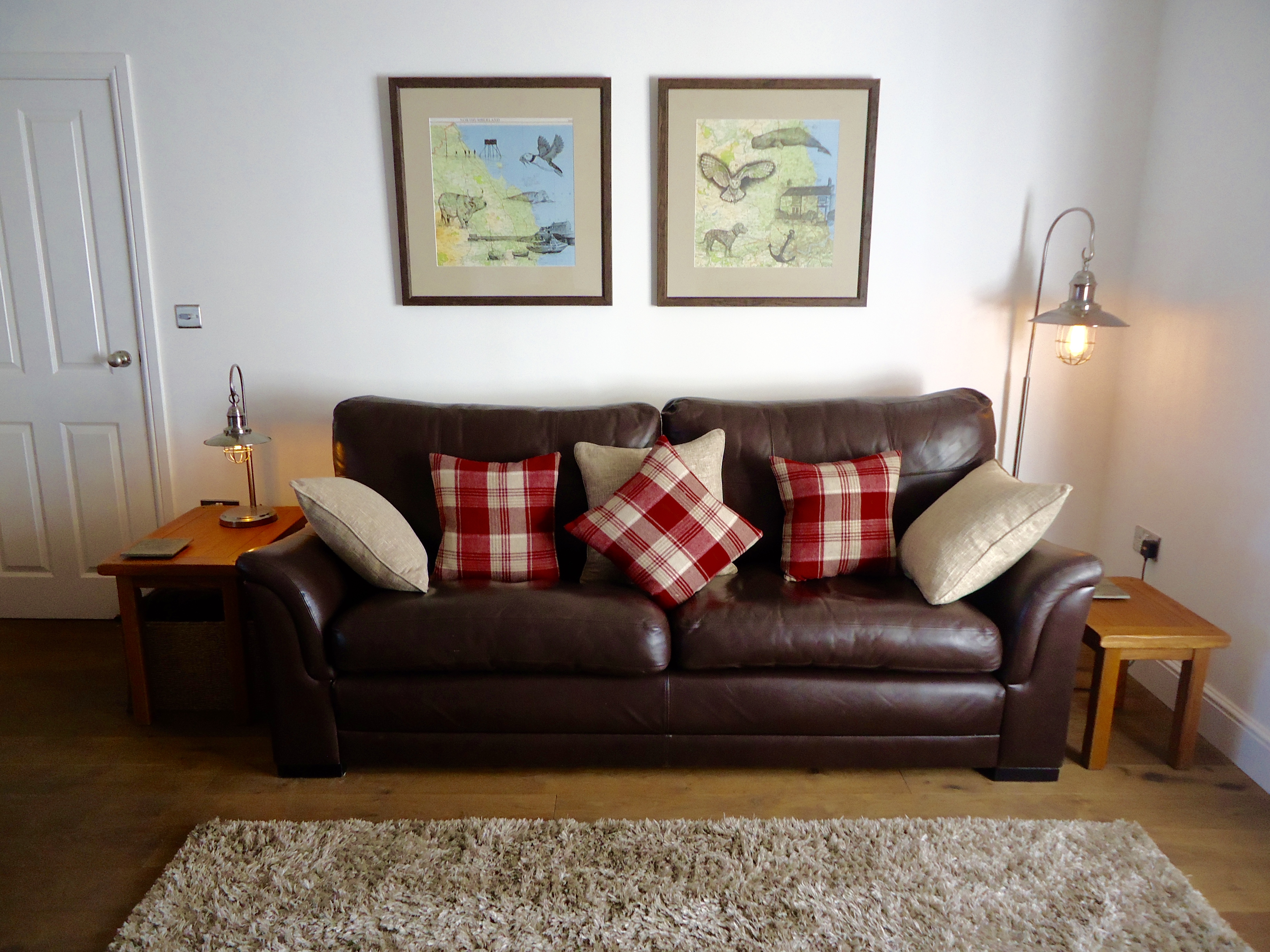 The leather sofa and armchairs are very comfortable, and the original artwork depicts local scenes and wildlife
