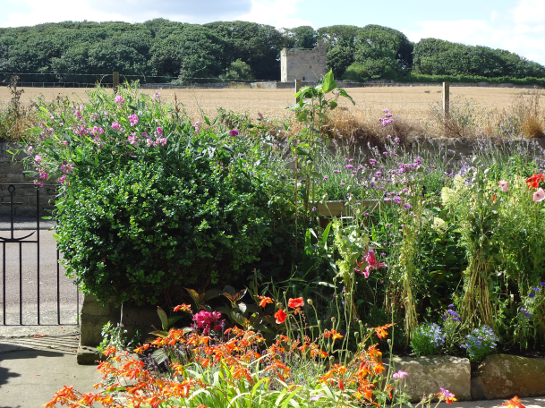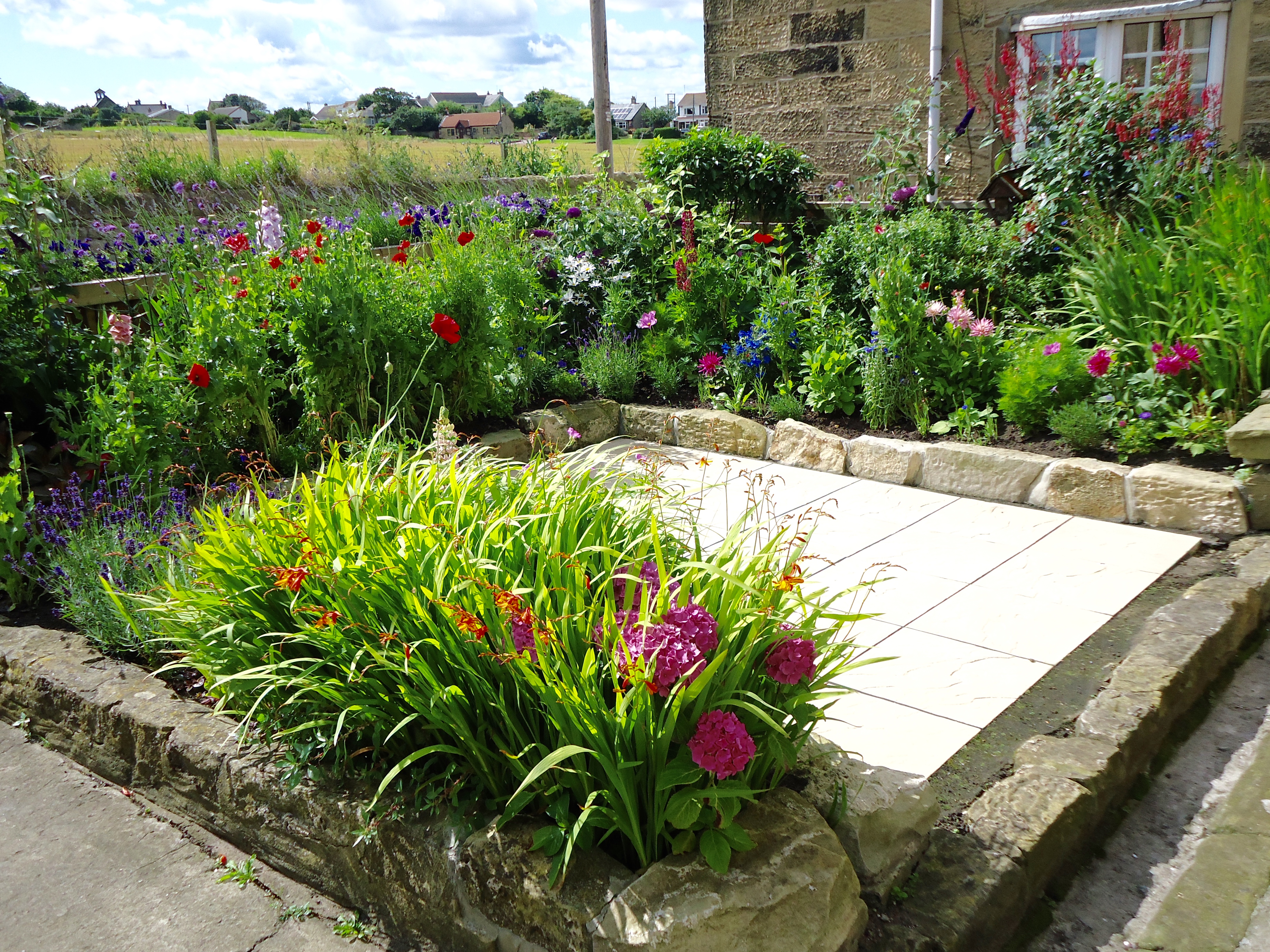 The front garden is a typical cottage garden, bursting with colour in the summer
