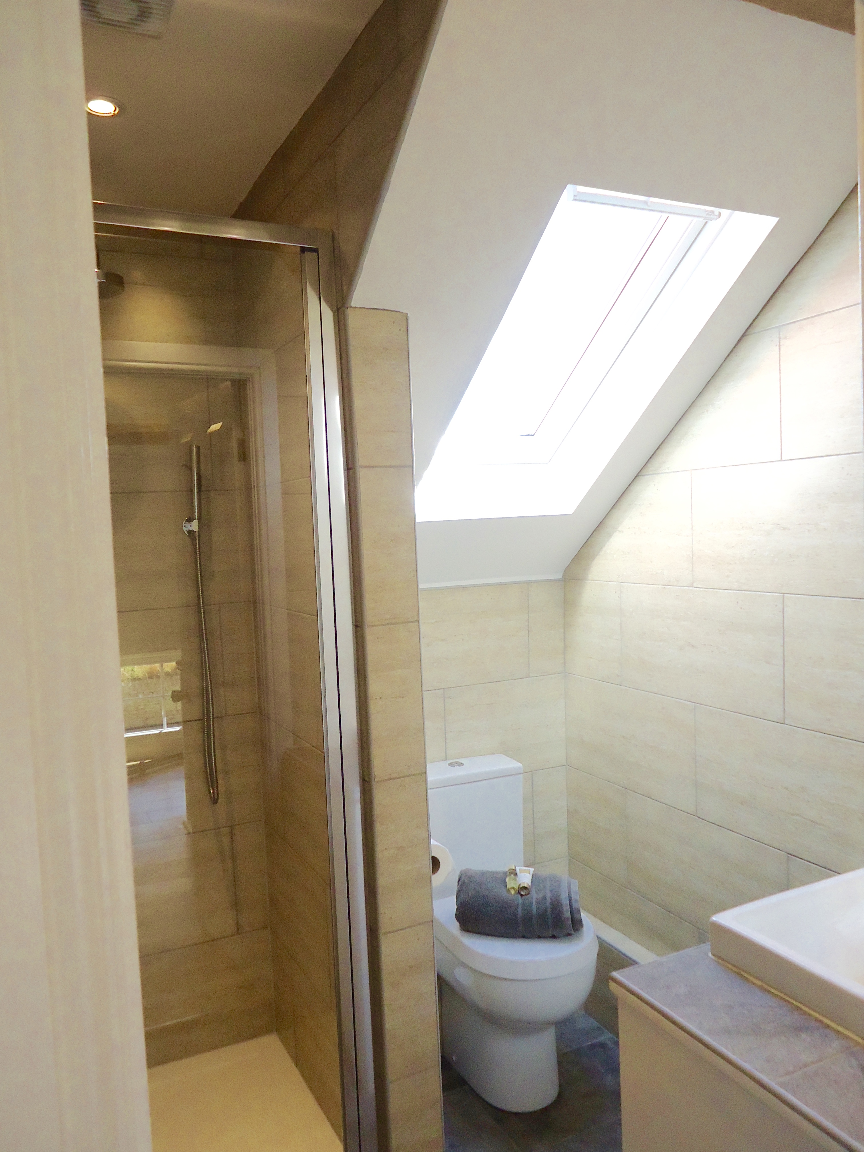 There are two bathrooms - the downstairs bathroom has a bath and WC