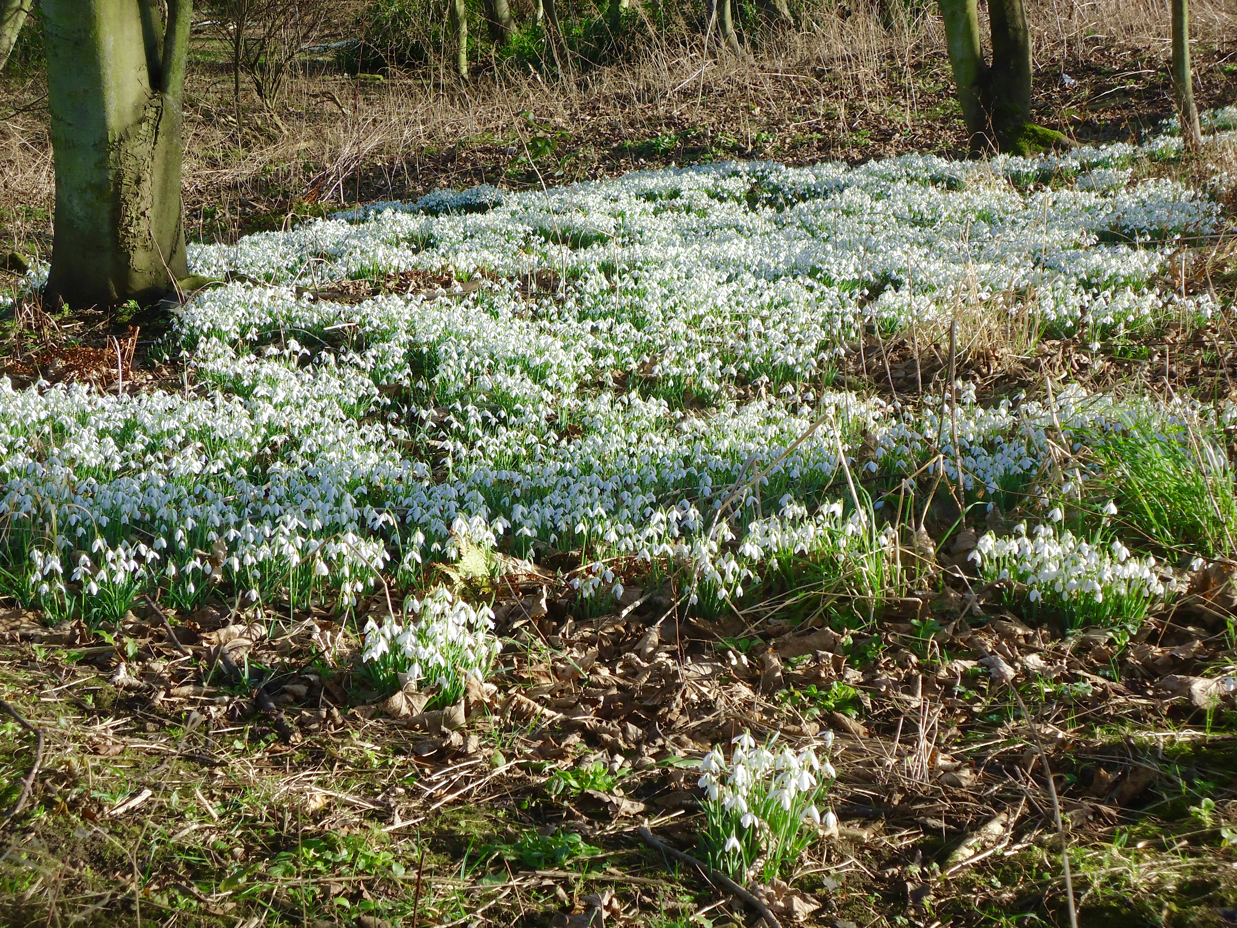 The woods around the Pele Tower opposite the cottage are full of snowdrops in Spring