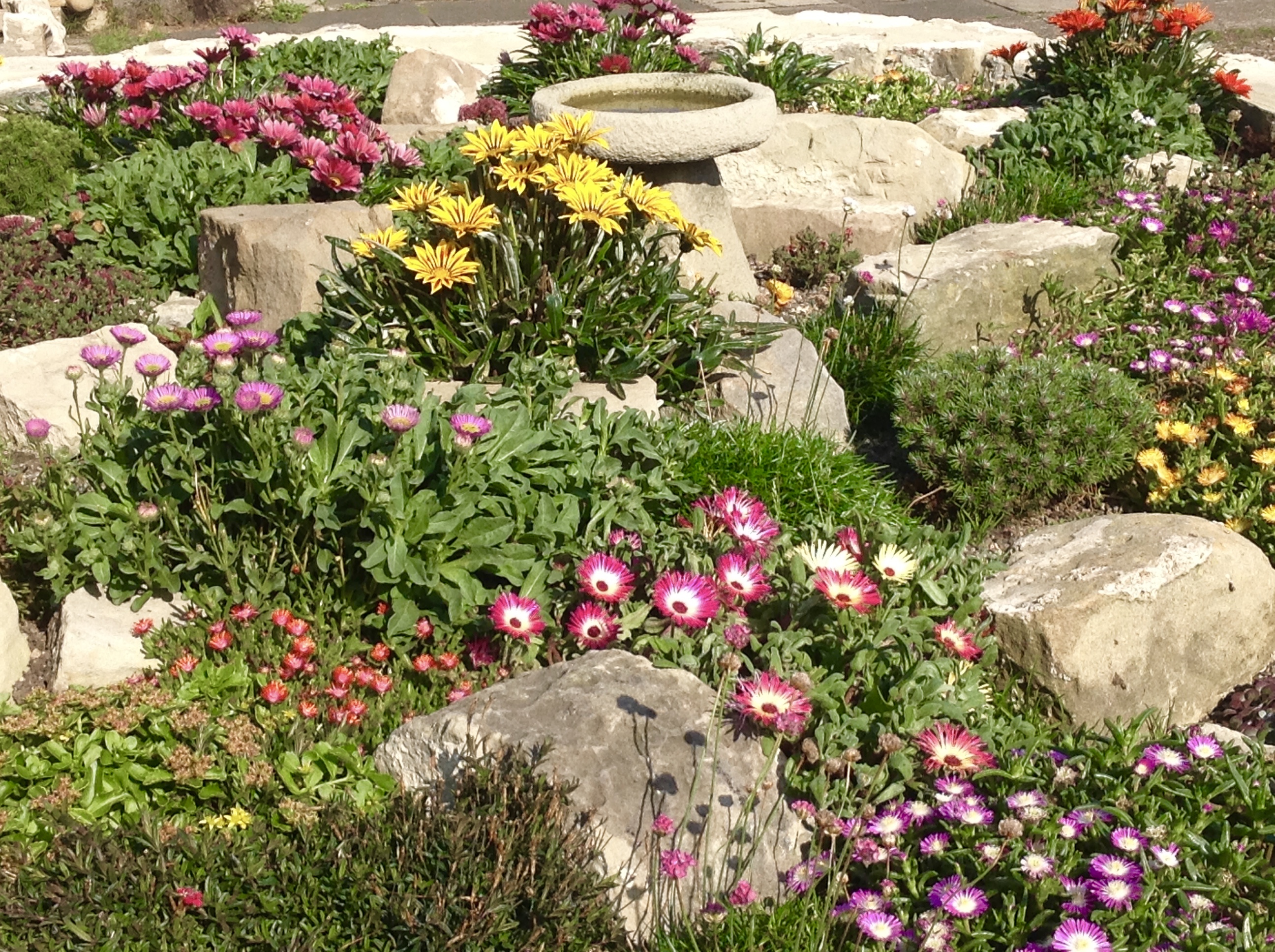 There is a pretty rock garden at the rear, full of flowers in spring and summer